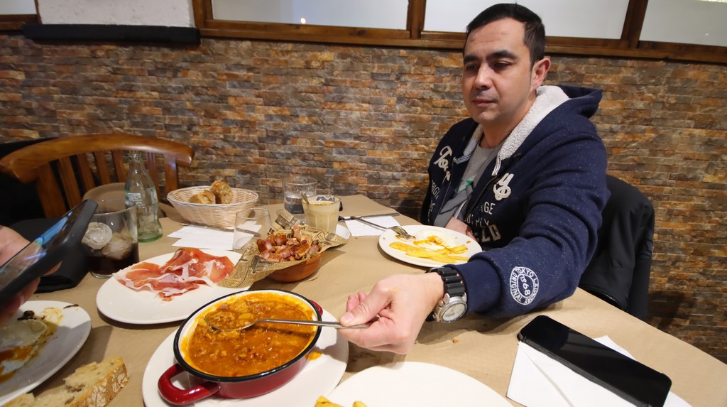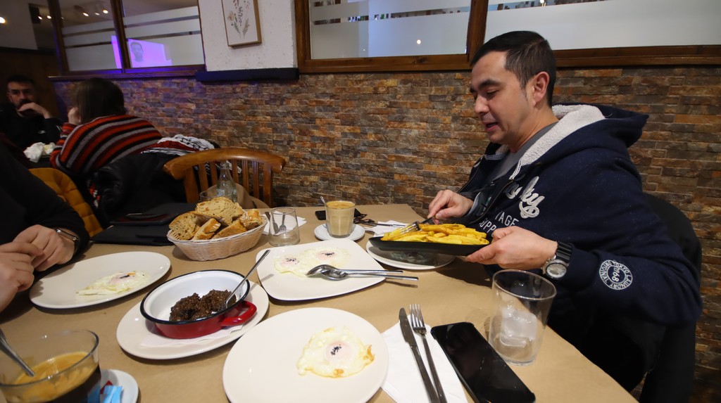 Mientras desayunábamos, observamos cómo en la cocina se preparaba el cocido montañés del menú del día, con su compango y sus alubias blancas, además de una leche frita casera que desprendía un aroma. También nos comentaron que la cocinera es portuguesa, lo que explica la presencia del bacalao en la carta, un plato que queda pendiente para la próxima visita junto con la asadurilla, que ese día no estaba disponible.