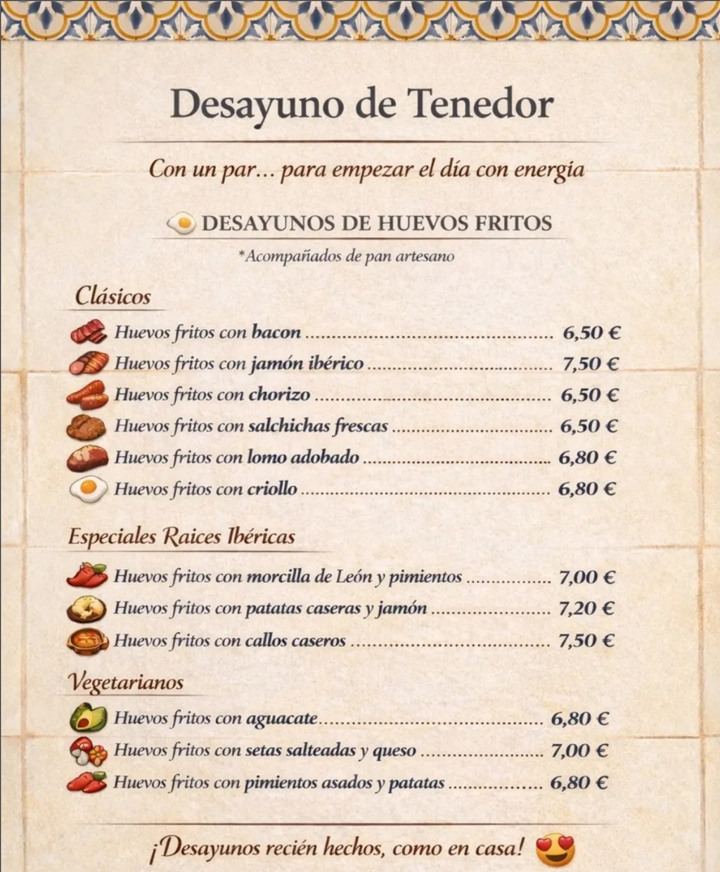 Llegamos tres aficionados a empezar el día con fundamento y, nada más cruzar la puerta, entendimos que el sitio tenía tirón: a las 10:30 las mesas estaban prácticamente llenas y la cocina funcionaba con un ritmo constante. Ese ambiente suele ser buena señal.