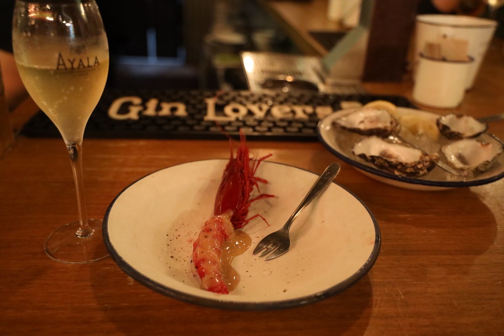 El jugo de la cabeza, de color grisaceo, es rico en compuestos umami y aporta una dimensión adicional al plato. Aunque se sirve pelado, es habitual —y recomendable— aprovechar lo que queda en la cabeza, ya que concentra gran parte de los sabores del marisco.