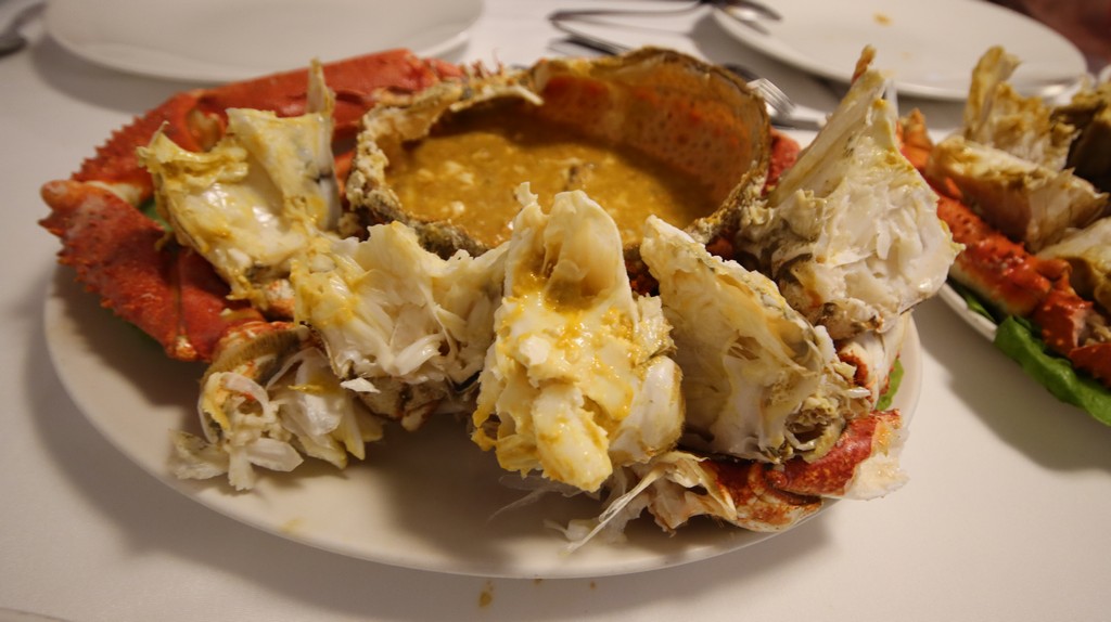 El momento más esperado del menú es el centollo cocido. Este año llegaron a la mesa tres ejemplares de buen tamaño, llenos y con una cocción precisa. La carne firme y la cabeza en su punto hicieron que cada pieza fuese un acierto. La posibilidad de repetir hace que este plato sea el centro de la experiencia, y no es raro que acaben cayendo varios más, como ocurrió en esta ocasión.