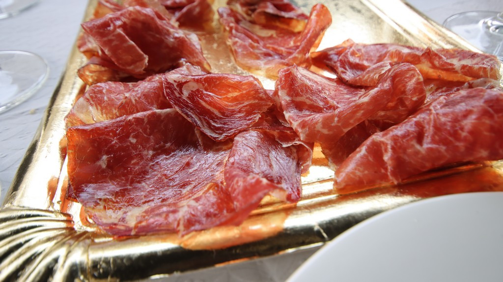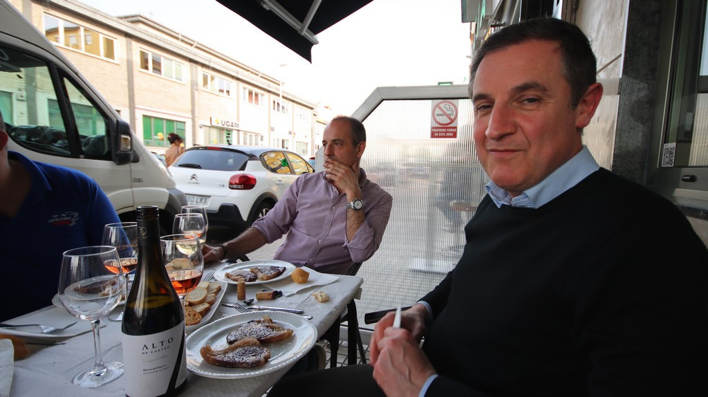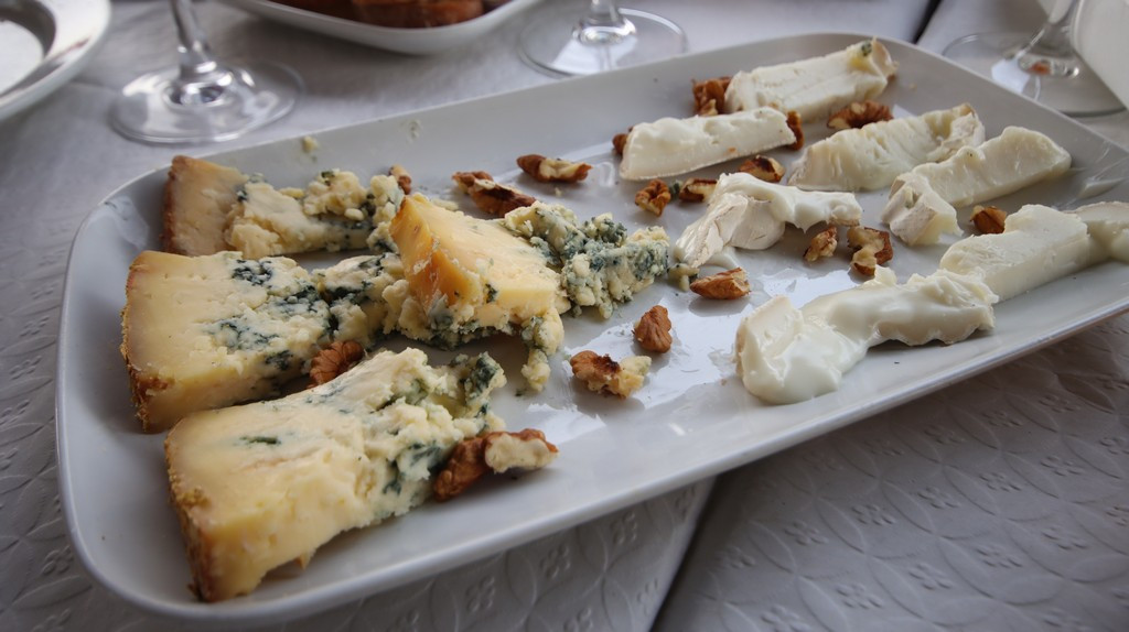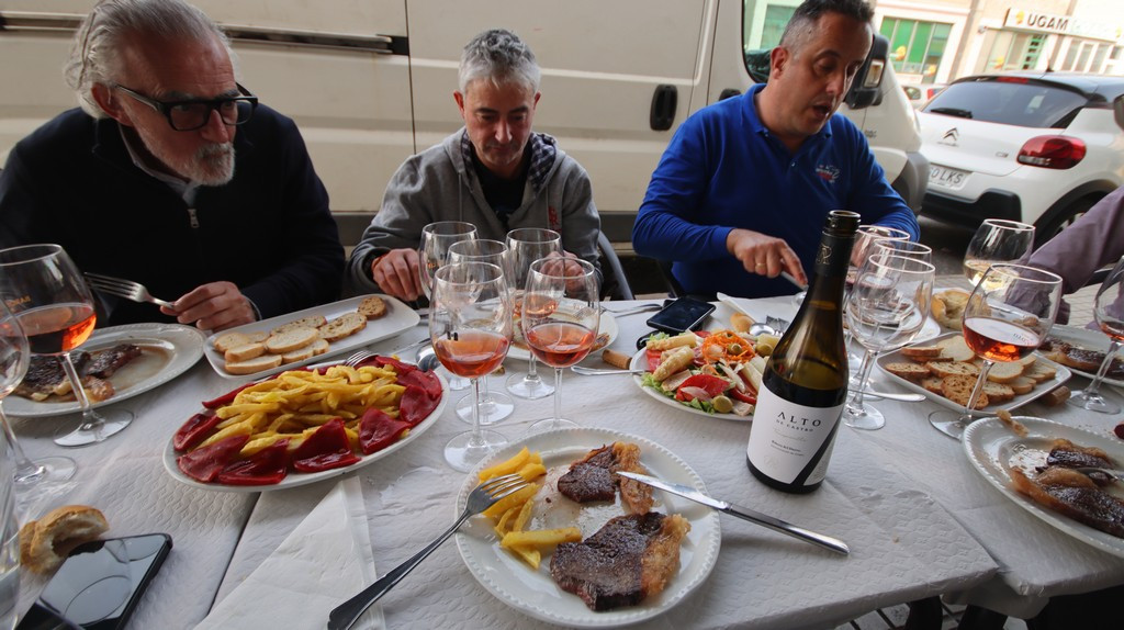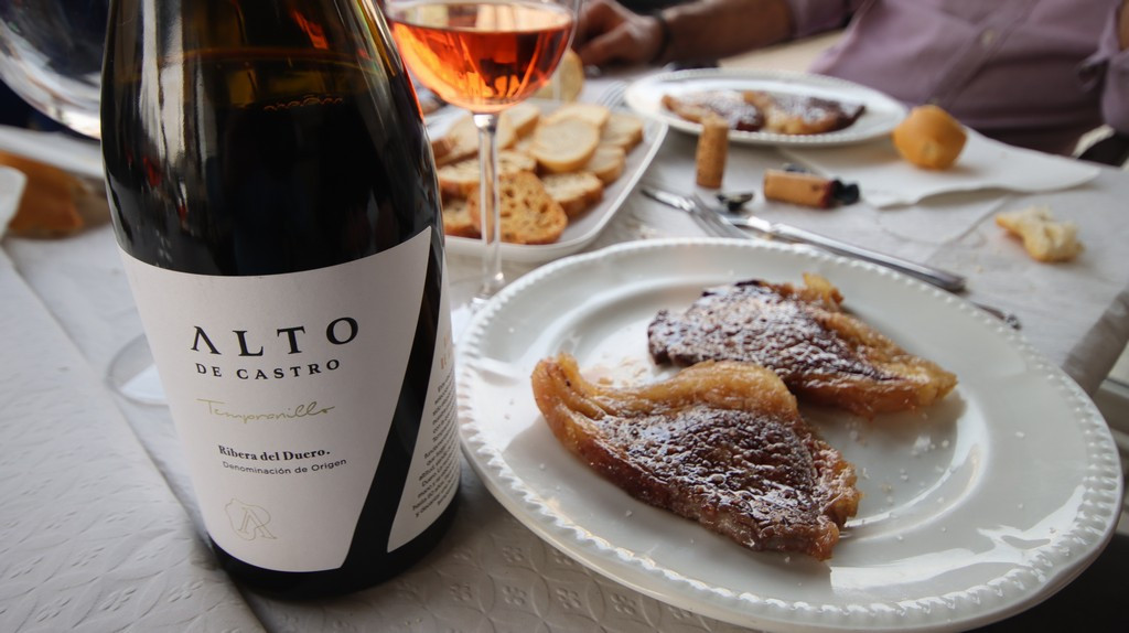 Junto a la cecina se sirvieron dos quesos: un Stilton, de pasta azul, y un queso de cabra muy cremoso cuyo origen no llegué a registrar, pero que aportaba equilibrio entre acidez y suavidad. Esta combinación de cecina y quesos potencia la degustación de vinos estructurados como los propuestos por Luis: referencias de Alto de Castro, bodega que destaca por la calidad de su albillo, su clarete de corte tradicional y sus tintos con buena expresión frutal.
