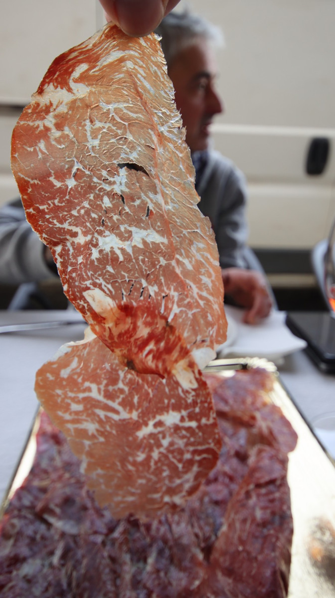 En esta ocasión, la convocatoria partió de Iñaki, que llegó con varias piezas de carne de UNIKO y una cecina de alta calidad, con una infiltración destacada y un aroma profundo. La textura firme y el perfil aromático prolongado evidencian un proceso de curación adecuado y un cuidado preciso en la selección de la materia prima.